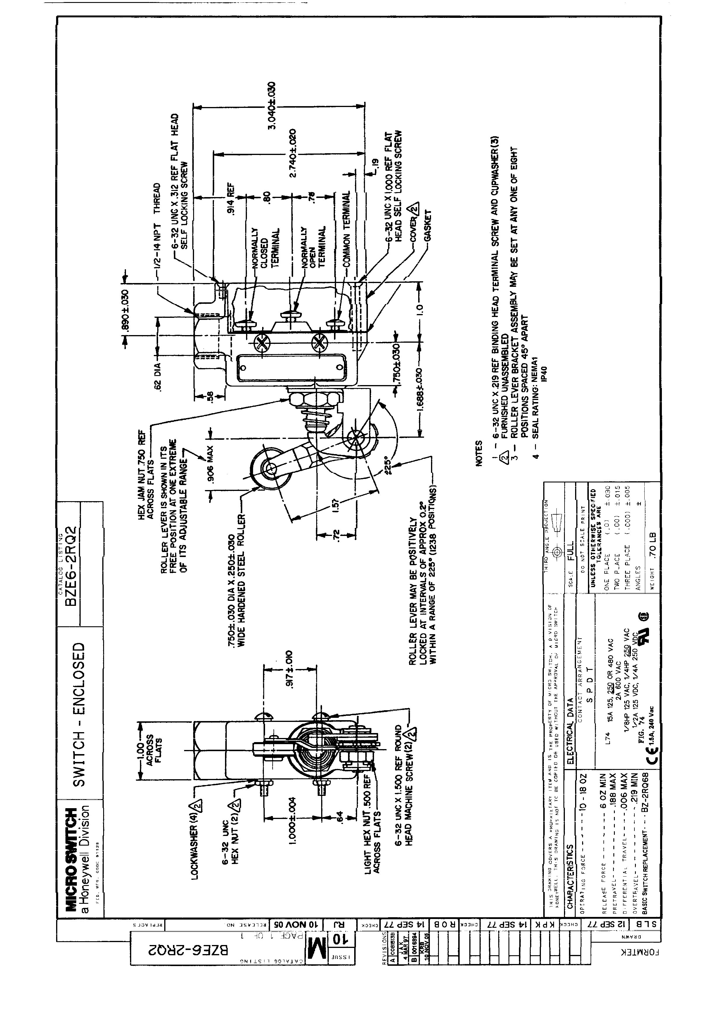 Honeywell roller lever limit switch