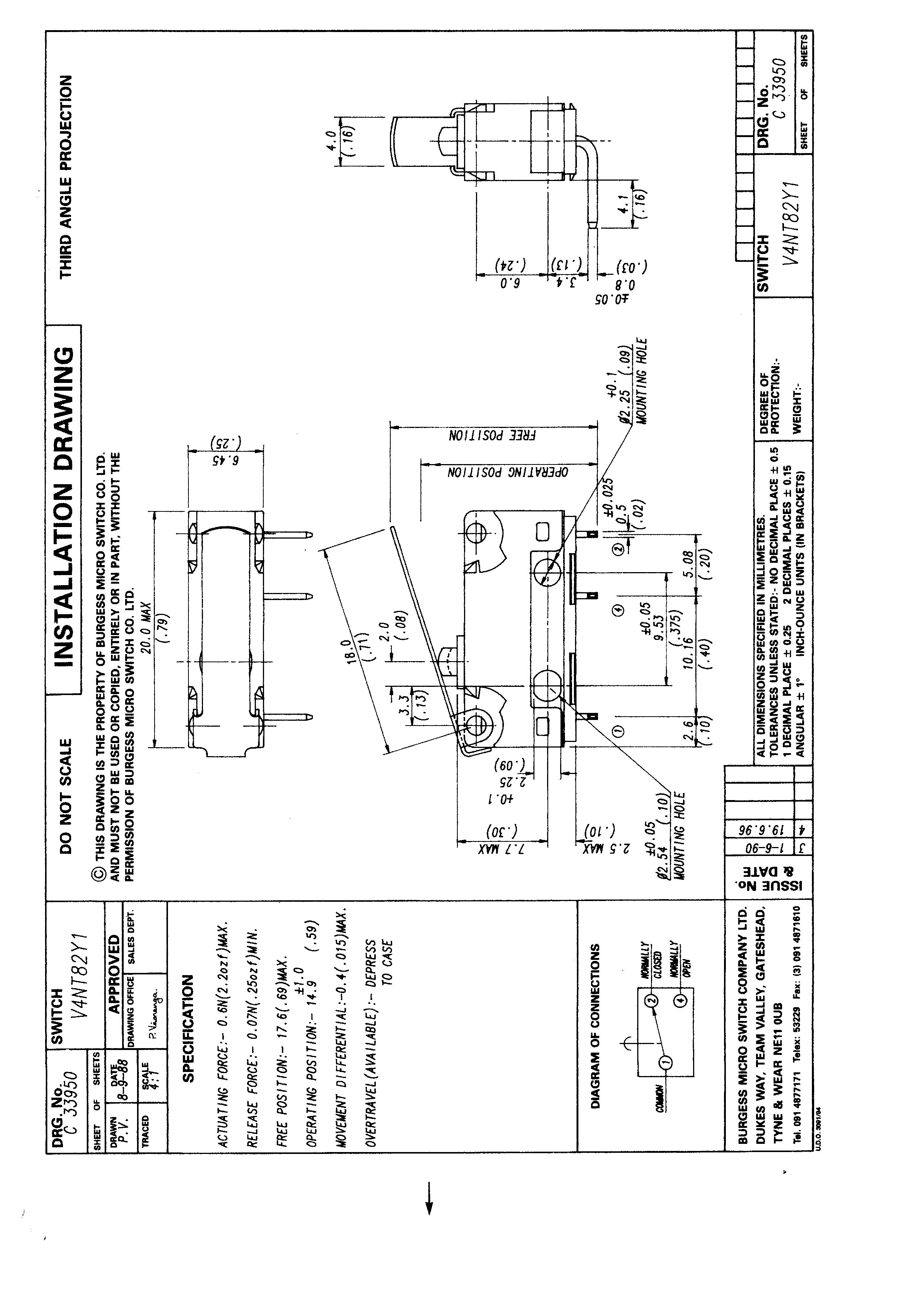 Saia-Burgess microswitch with plain lever and left-hand PCB terminals.