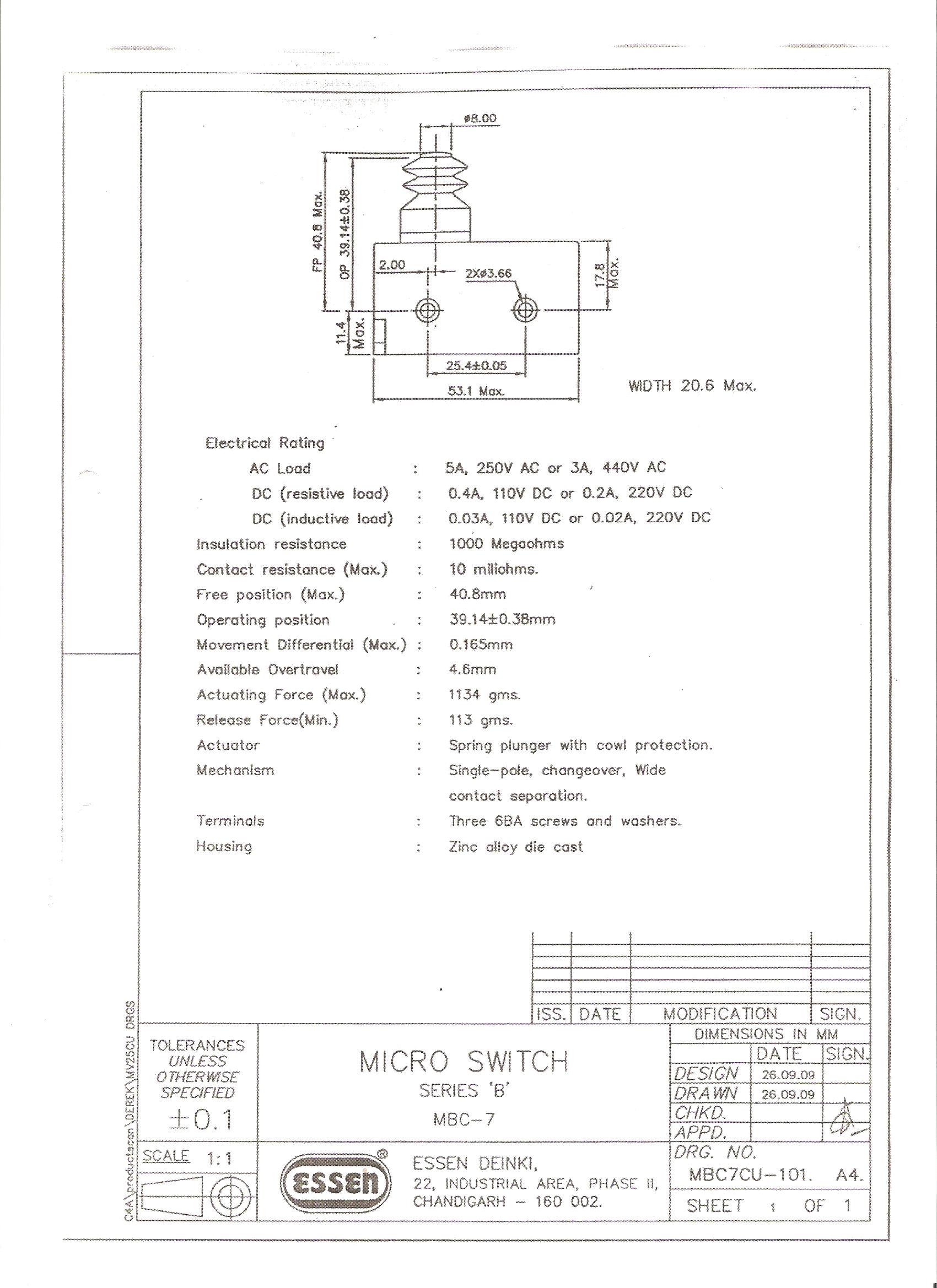 Essen 15a IP54 cowled plunger Microswitch.