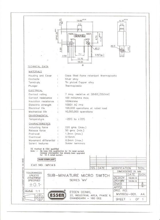 Essen 7a 2PDB bar actuator Microswitch