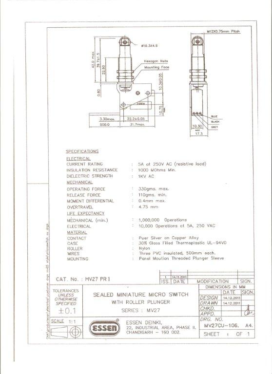 Saia-Burgess microswitch with inline roller. NOW OBSOLETE.