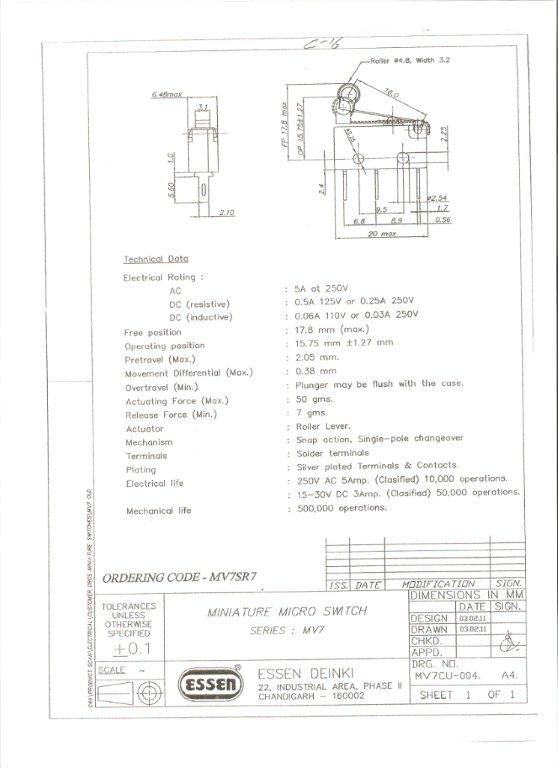 Essen 5a 18mm roller lever Microswitch