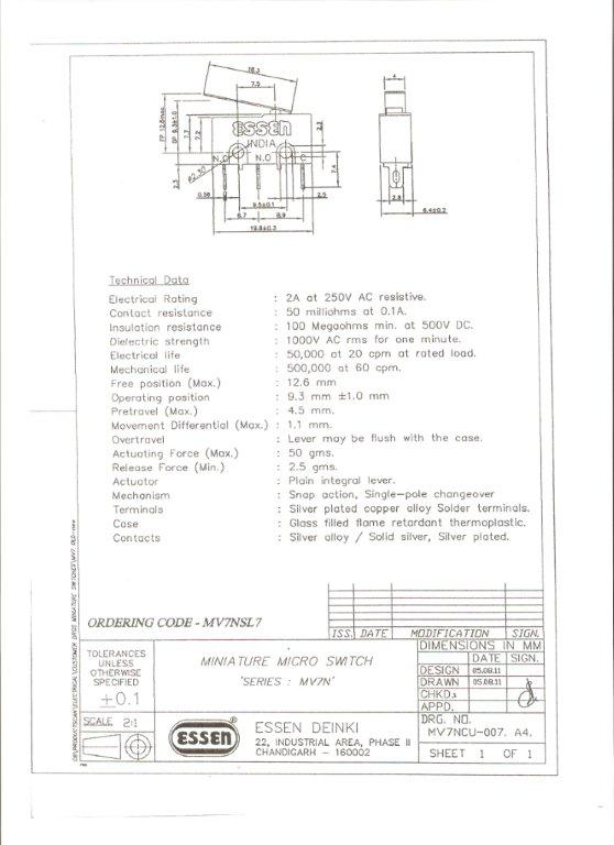 Essen 2a 18mm lever Microswitch