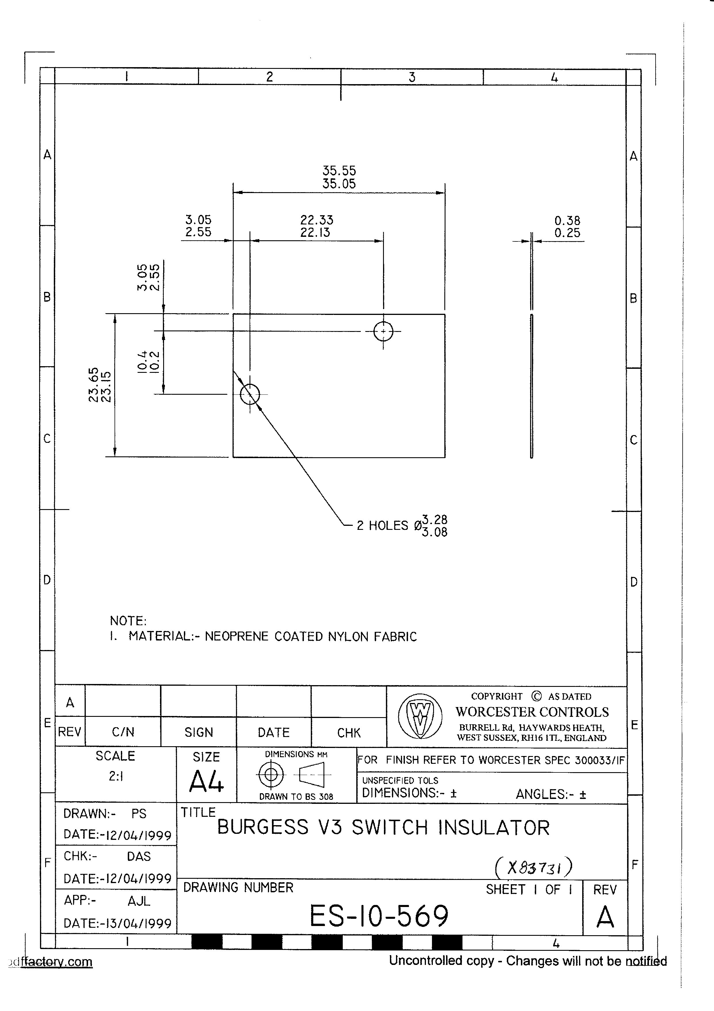 Saia-Burgess insulating sheet - recommended as a safety precaution when switches are mounted on metal surfaces within reach of the operator.